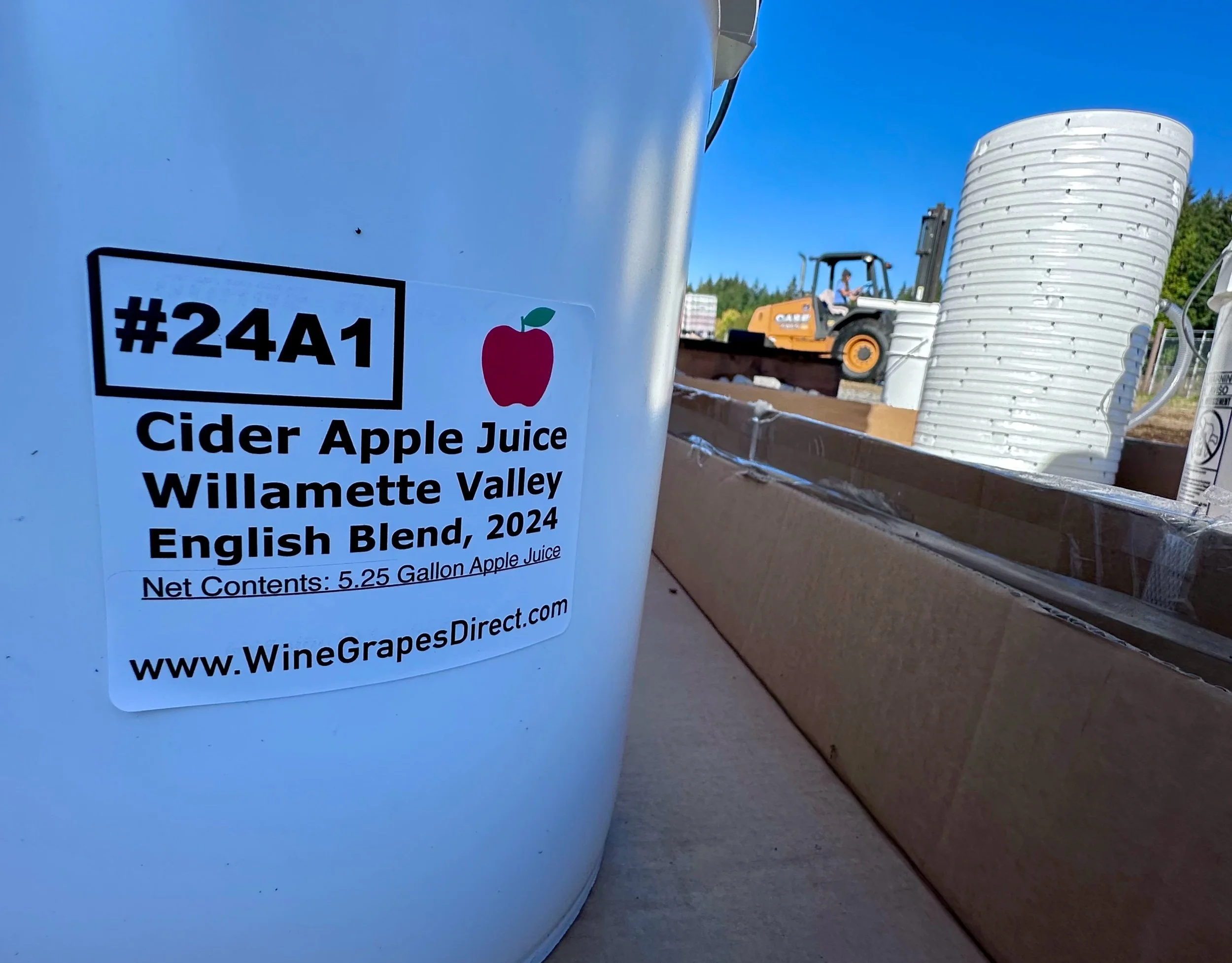 English cider apple juice → more acidity than French, slightly less tannin (but still way more than grocery store juice).