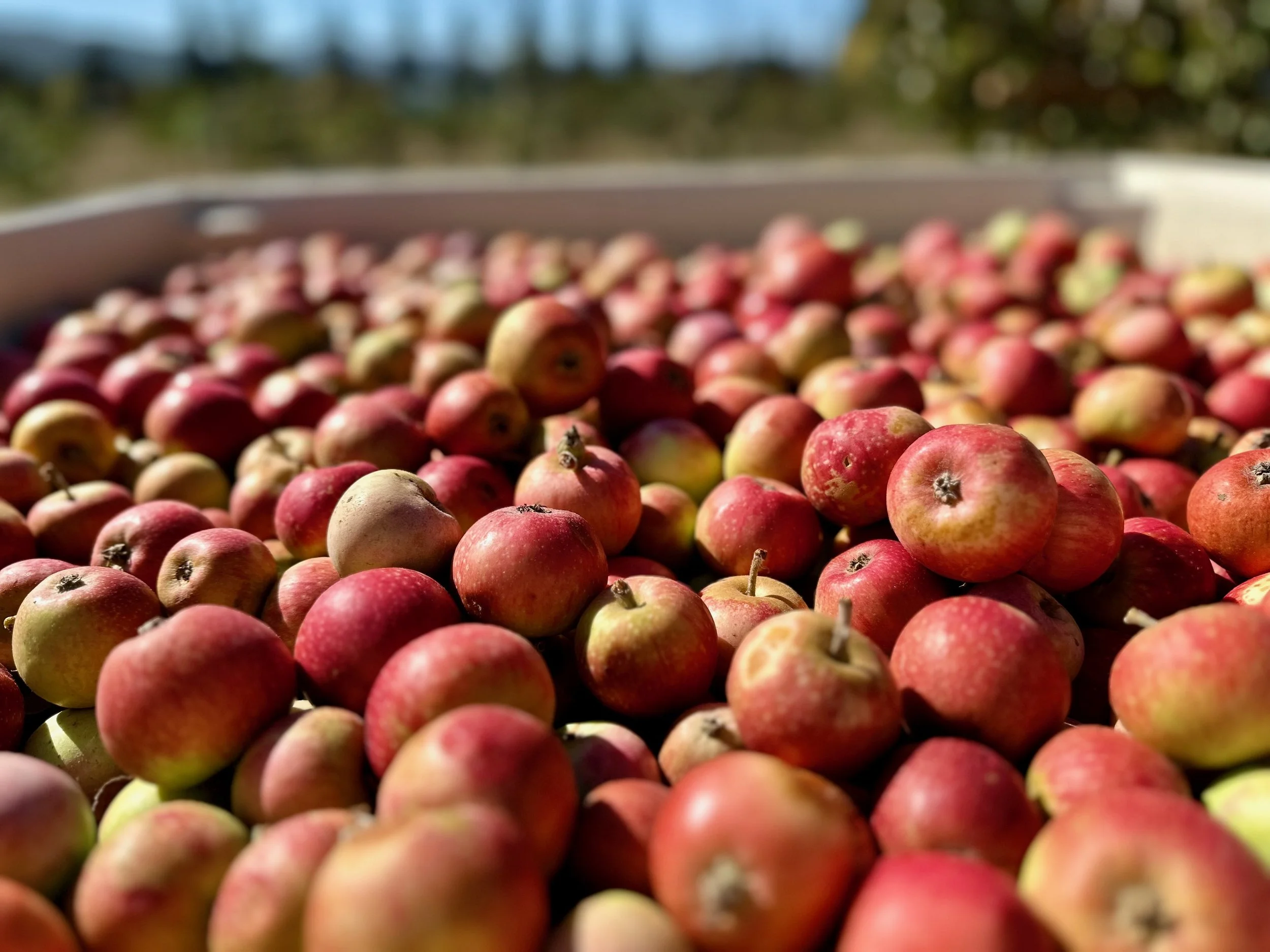 Oregon apple orchard: Cider apple orchard in Oregon, where cool breezes and forest air create intensely flavorful fruit.